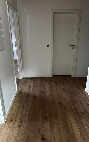 Wände und Decken gespachtelt, Vinylboden verlegt und Türen montiert