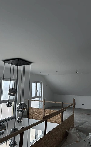 Decke eingebaut, Wände und Decke gespachtelt, tapeziert und gestrichen