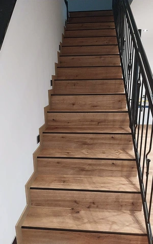 Treppen wurden mit robustem Vinylbelag verkleidet und modern gestaltet
