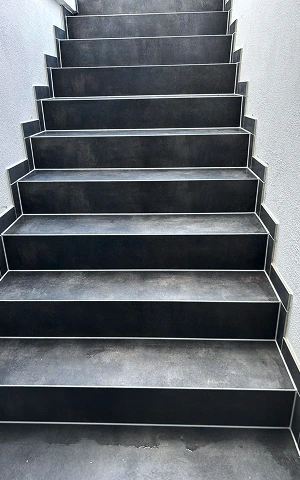 Fliesen auf Treppen verlegt und mit Epoxidharz verfugt